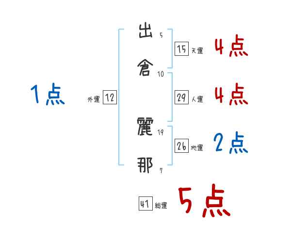 出倉麗那さんの画数の鑑定結果