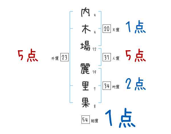 内木場麗里果さんの画数の鑑定結果