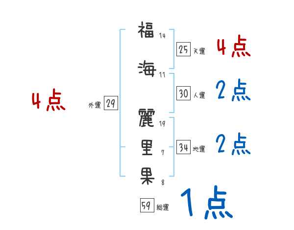 福海麗里果さんの画数の鑑定結果