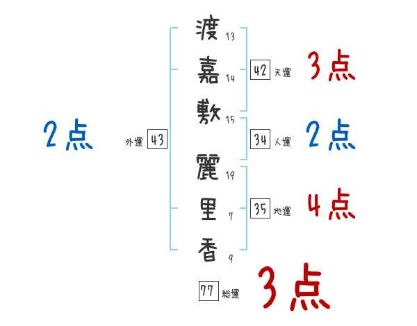 渡嘉敷麗里香さんの画数の鑑定結果