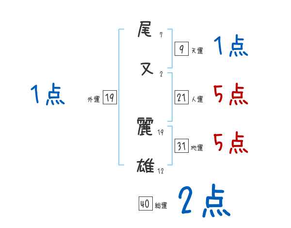 尾又麗雄さんの画数の鑑定結果