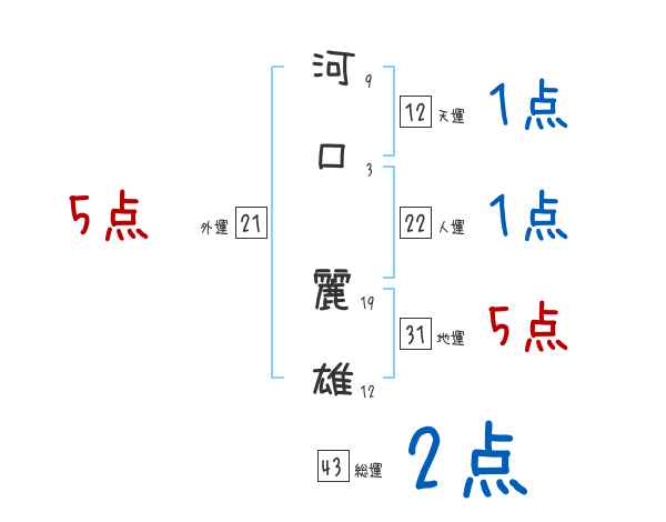 河口麗雄さんの画数の鑑定結果