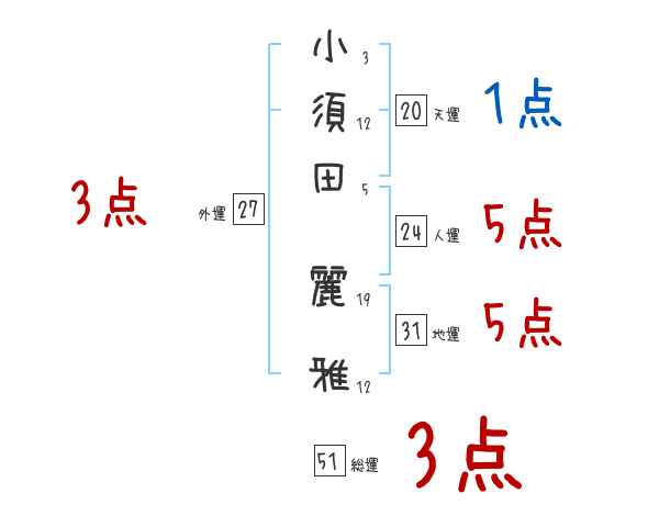 小須田麗雅さんの画数の鑑定結果