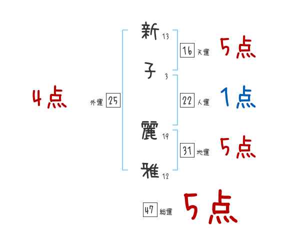 新子麗雅さんの画数の鑑定結果