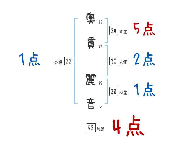 奥貫麗音さんの画数の鑑定結果