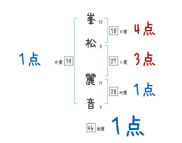 峯松麗音さんの画数の鑑定結果