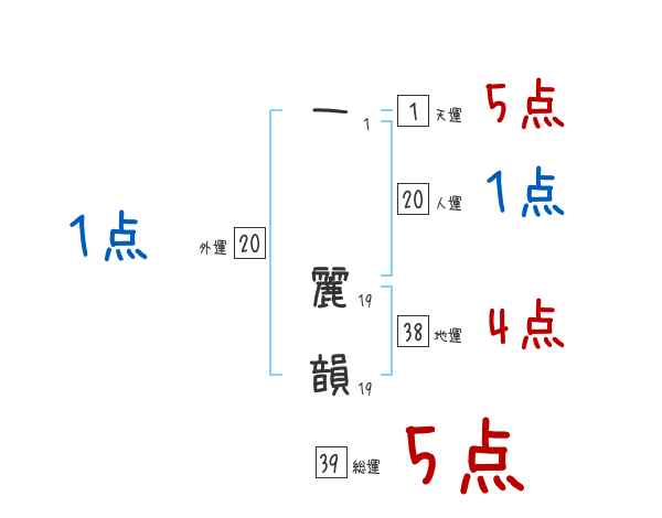外運![]() | 一麗韻さんの外運は20画の1つ星!社交が苦手。人とは違った才能があり波乱万丈な人生かも。 生活面を象徴する運勢です。外部から受ける影響力を表し、結婚運、家庭運や職場、環境への順応性を表します。 |