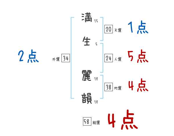 満生麗韻さんの画数の鑑定結果