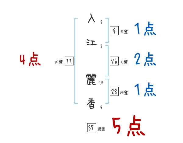 天運![]() | 入江麗香さんの天運は9画の1つ星!消極的で才能を発揮することが苦手なことも。周りの意見に耳を傾けましょう。 家系が持つ宿命的な運勢を表します。祖先から受け継いだ苗字ですので自分の力が及びません。家柄を象徴します。 |