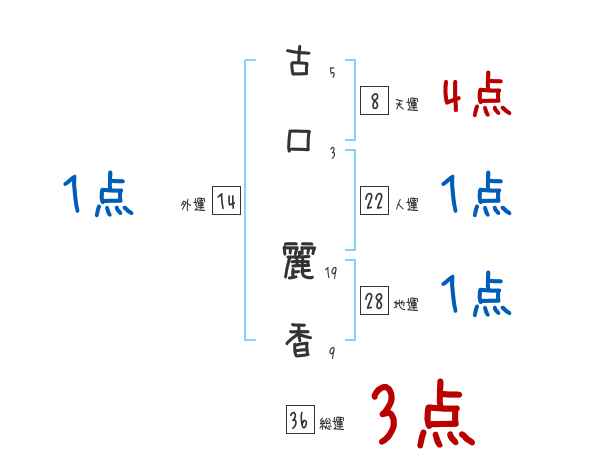 古口麗香さんの画数の鑑定結果
