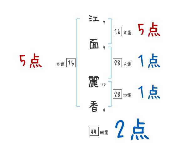 江面麗香さんの画数の鑑定結果