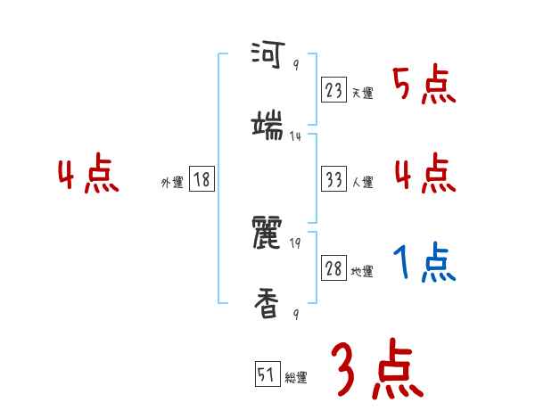 河端麗香さんの画数の鑑定結果