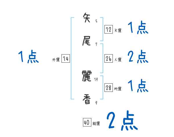 矢尾麗香さんの画数の鑑定結果