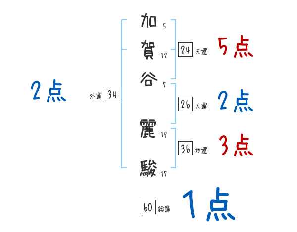 加賀谷麗駿さんの画数の鑑定結果