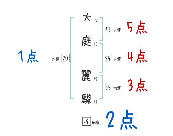 大庭麗駿さんの画数の鑑定結果