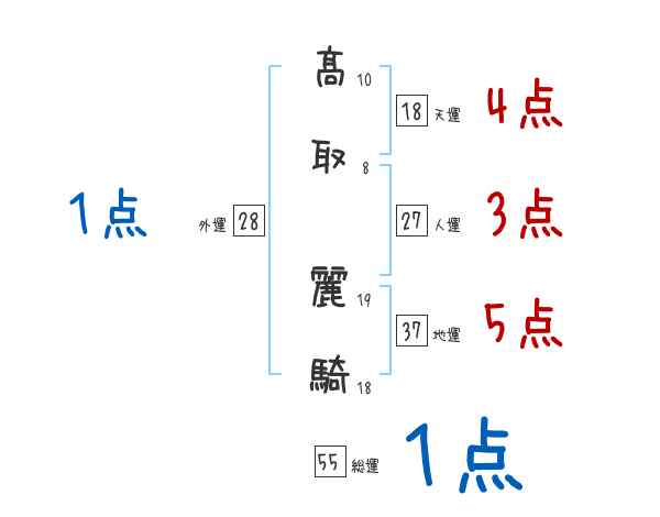 髙取麗騎さんの画数の鑑定結果