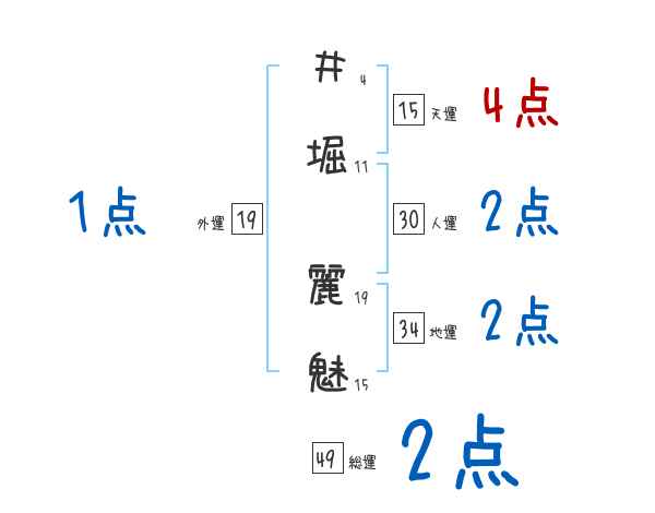 井堀麗魅さんの画数の鑑定結果