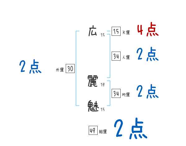 天運![]() | 広麗魅さんの天運は15画の4つ星!人徳があり出世する。順調に物事を進め円満な人生。 家系が持つ宿命的な運勢を表します。祖先から受け継いだ苗字ですので自分の力が及びません。家柄を象徴します。 |