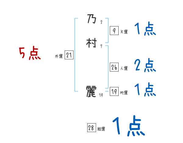 総運![]() | 乃村麗さんの総運は28画の1つ星!家庭環境に注意。スポーツで活躍できる能力があるかも。 あなたの人生を表す1番重要な運勢です。生涯を通じて影響する総合運となり、主に50歳以降の晩年期に影響を及ぼします。 |