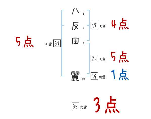 八反田麗さんの画数の鑑定結果