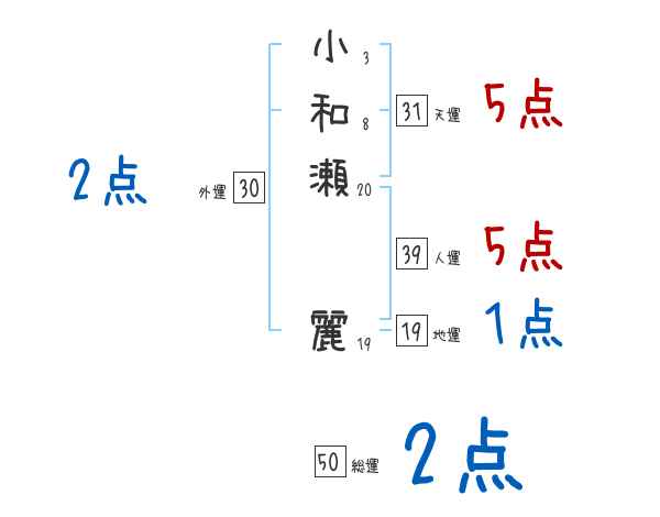 小和瀬麗さんの画数の鑑定結果