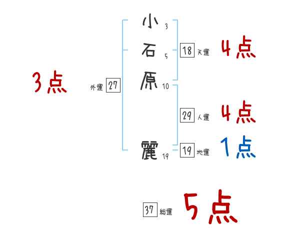 小石原麗さんの画数の鑑定結果