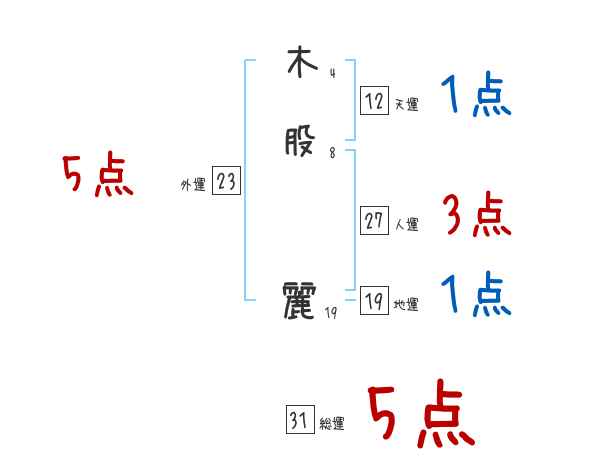 木股麗さんの画数の鑑定結果