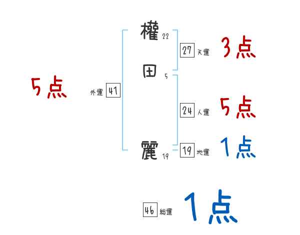 外運![]() | 權田麗さんの外運は41画の5つ星!大志を抱き、目標に向かって実力を発揮し達成する。温和な性格。 生活面を象徴する運勢です。外部から受ける影響力を表し、結婚運、家庭運や職場、環境への順応性を表します。 |