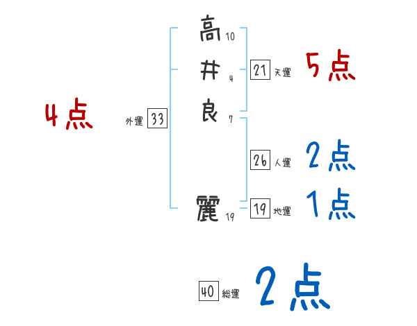 高井良麗さんの画数の鑑定結果