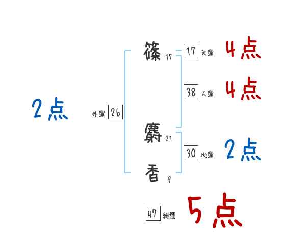 篠麝香さんの画数の鑑定結果
