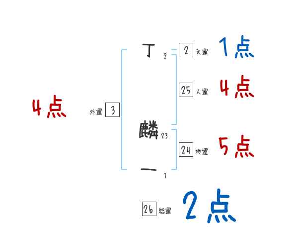 丁麟一さんの画数の鑑定結果