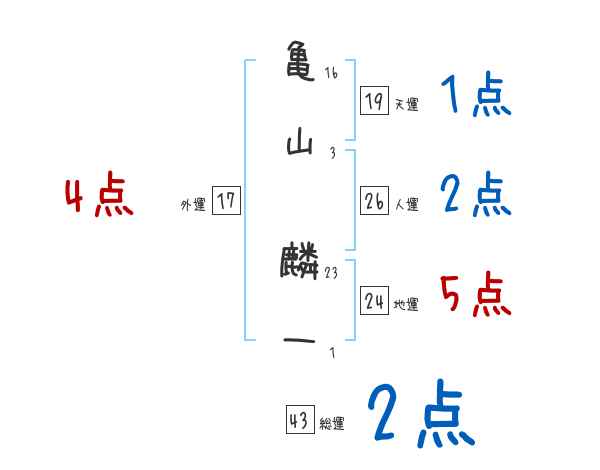 家系が持つ宿命的な運勢を表します。祖先から受け継いだ苗字ですので自分の力が及びません。家柄を象徴します。