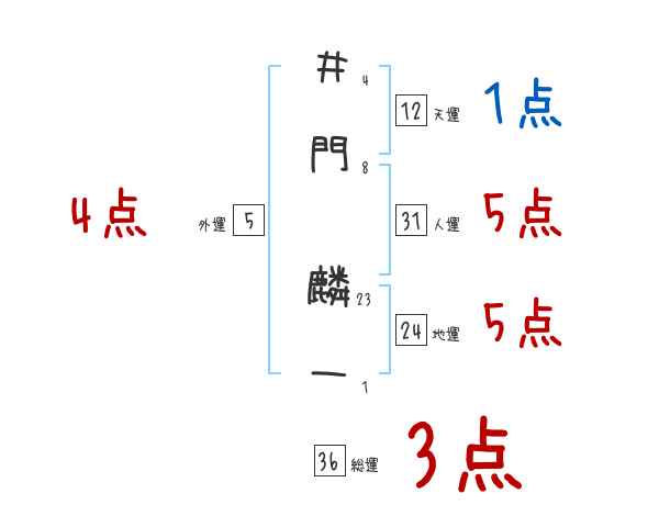 井門麟一さんの画数の鑑定結果