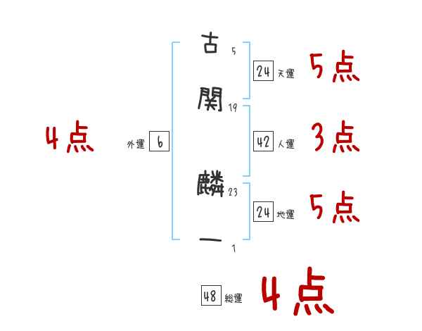 古関麟一さんの画数の鑑定結果
