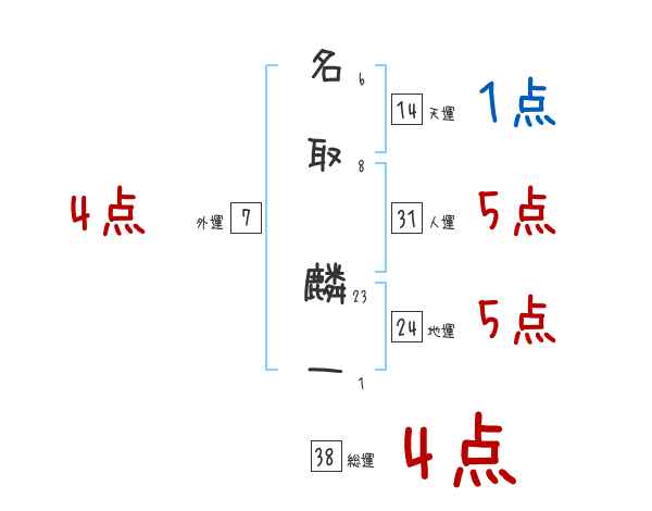 名取麟一さんの画数の鑑定結果