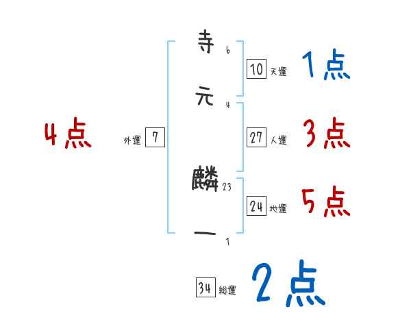 寺元麟一さんの画数の鑑定結果