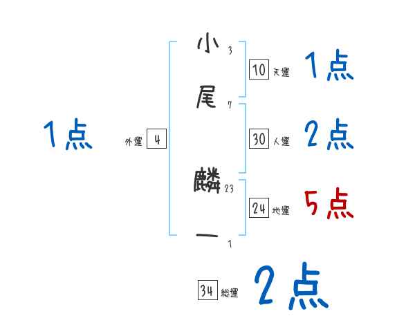 小尾麟一さんの画数の鑑定結果