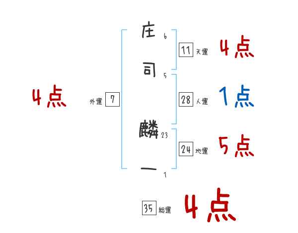 庄司麟一さんの画数の鑑定結果