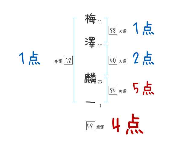 梅澤麟一さんの画数の鑑定結果