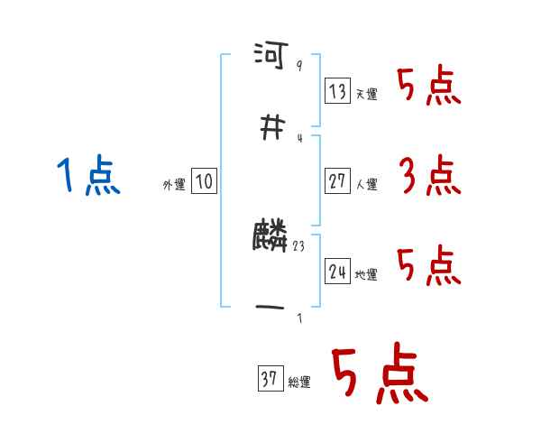 河井麟一さんの画数の鑑定結果