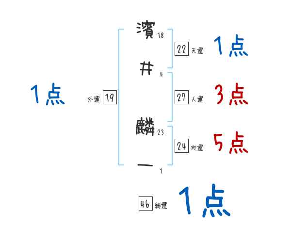 天運![]() | 濱井麟一さんの天運は22画の1つ星!努力することが苦手ないっぽう手先が器用。芸術性にも優れる。 家系が持つ宿命的な運勢を表します。祖先から受け継いだ苗字ですので自分の力が及びません。家柄を象徴します。 |