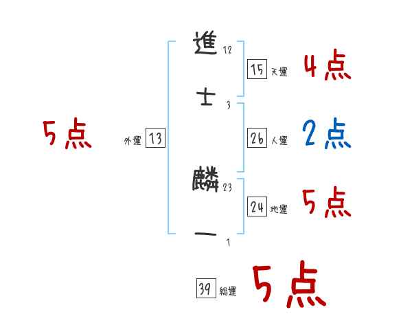 進士麟一さんの画数の鑑定結果