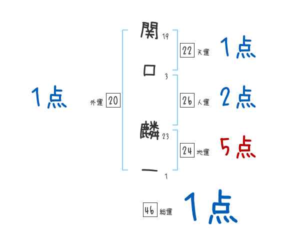 関口麟一さんの画数の鑑定結果