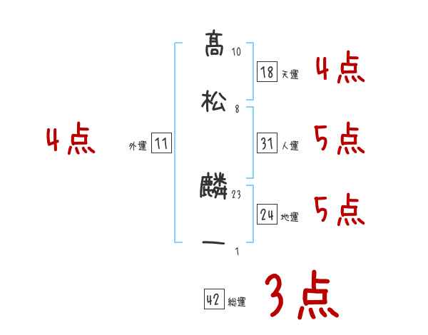髙松麟一さんの画数の鑑定結果