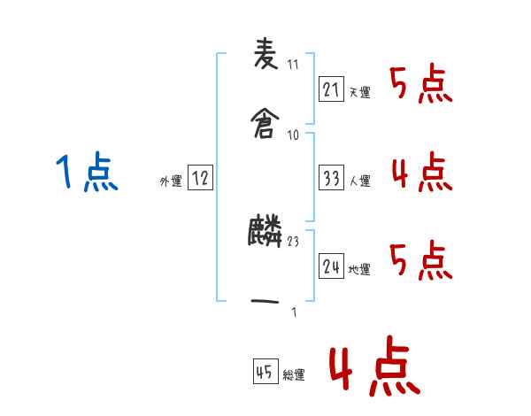 麦倉麟一さんの画数の鑑定結果