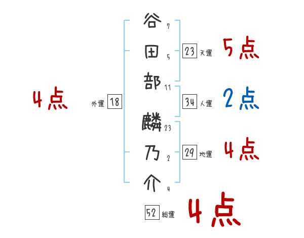 谷田部麟乃介さんの画数の鑑定結果