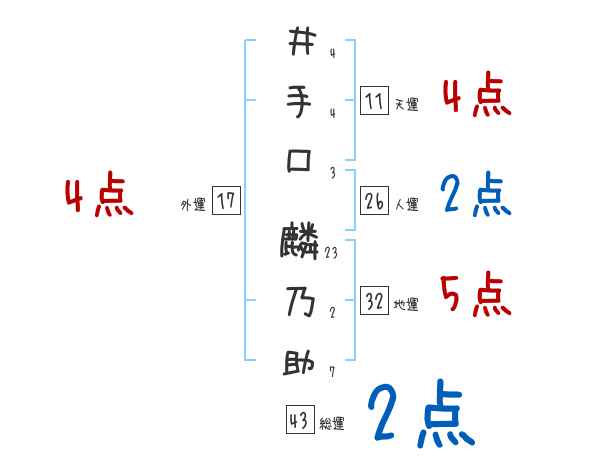 井手口麟乃助さんの画数の鑑定結果