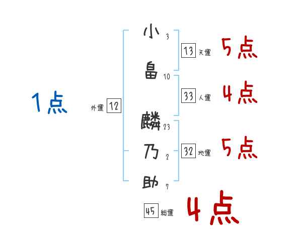 小畠麟乃助さんの画数の鑑定結果