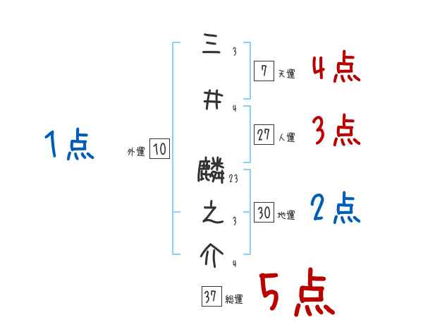 総運![]() | 三井麟之介さんの総運は37画の5つ星!努力家で順応性に優れる。現実的な考え方ができ忠実に物事をこなす。 あなたの人生を表す1番重要な運勢です。生涯を通じて影響する総合運となり、主に50歳以降の晩年期に影響を及ぼします。 |