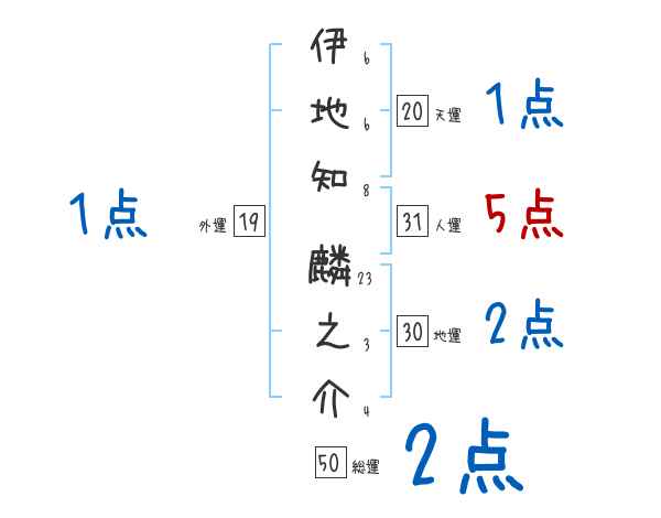 総運![]() | 伊地知麟之介さんの総運は50画の2つ星!浮き沈みが激しく不安定。しりすぼみに衰退しやすいので注意しましょう。 あなたの人生を表す1番重要な運勢です。生涯を通じて影響する総合運となり、主に50歳以降の晩年期に影響を及ぼします。 |